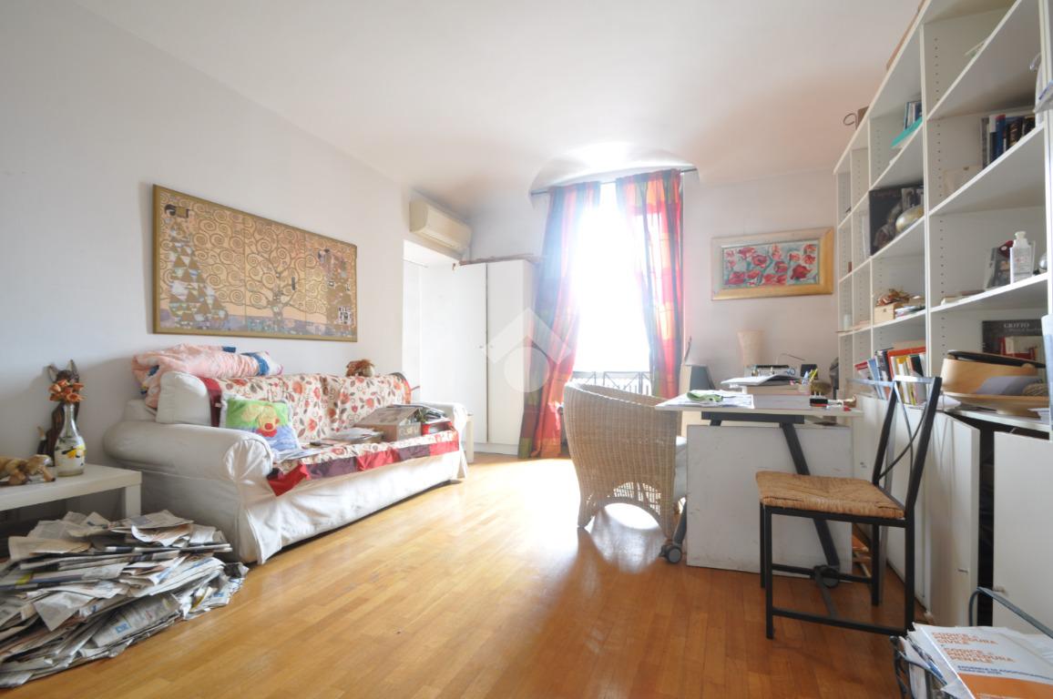 Piazza de Amicis, si propone in vendita un alloggio situato al piano alto di un edificio d'epoca. L'immobile è stato oggetto di una totale ristrutturazione e offre spazi ben distribuiti, composto di ingresso living su soggiorno con zona cottura, due camere da letto, una sala da bagno, lavanderia e cantina. Un balcone che si affaccia sulla collina aggiunge un tocco di vivibilità all'ambiente. L'edificio è dotato di ascensore è presente l'impianto di condizionamento per maggior comfort durante i mesi più caldi. Questa proprietà è interessante per chi cerca un'abitazione senza barriere architettoniche, da personalizzare e con il riscaldamento autonomo.